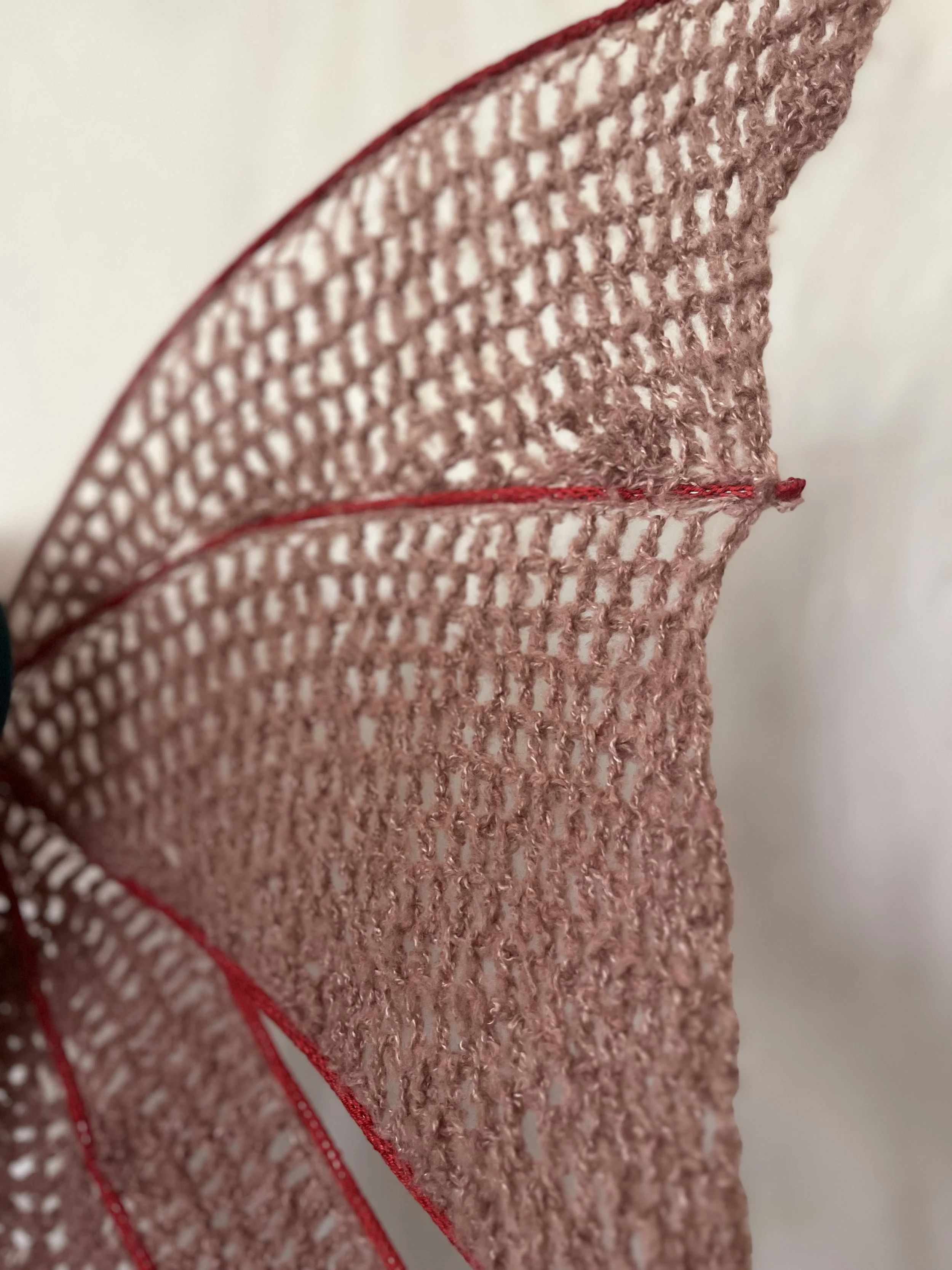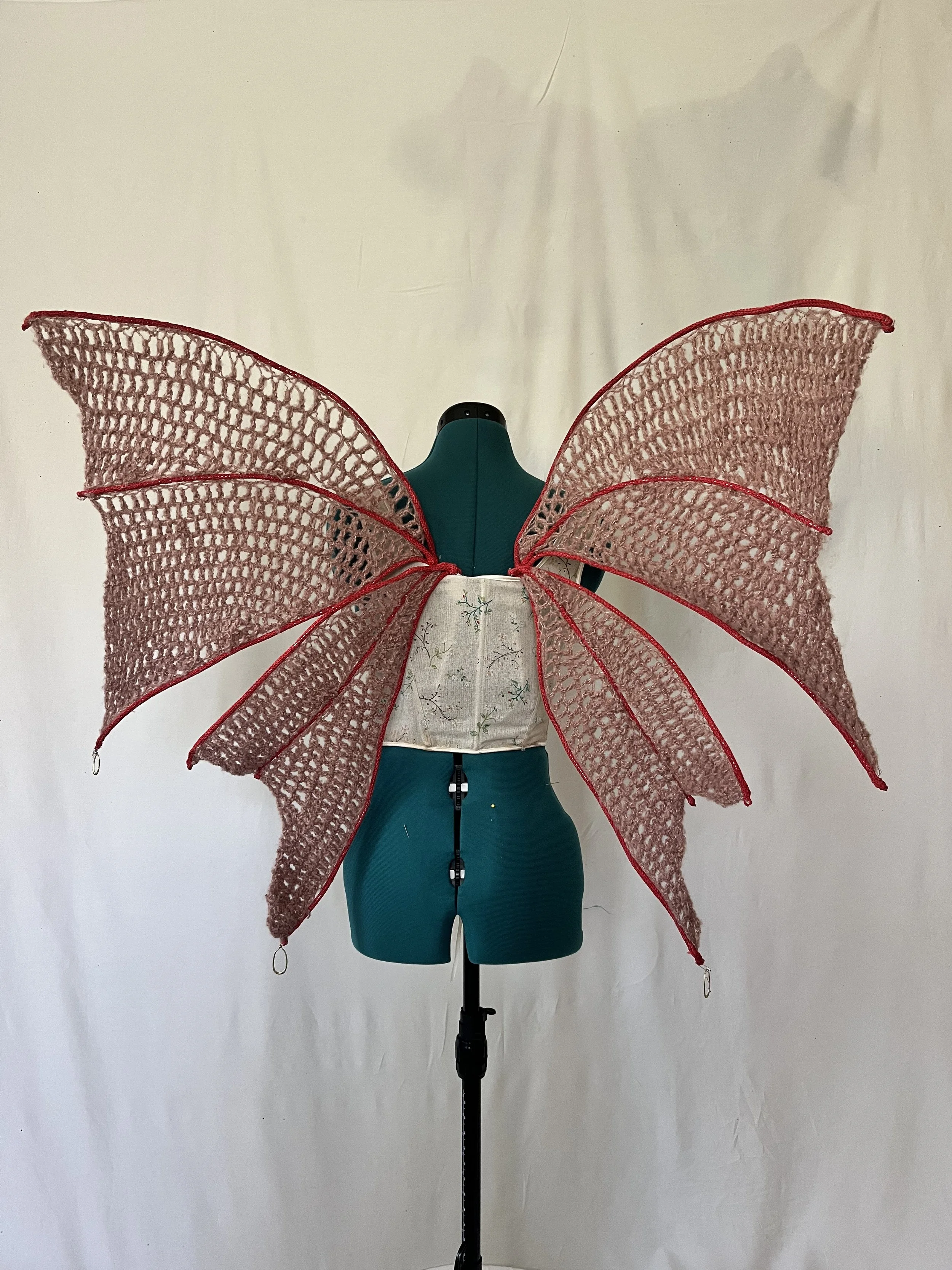 They were made by bending a U shape out of the wire and adding I cords to cover them. The actual crochet “web” of the wing was done directly onto the structure.